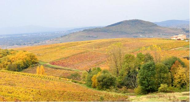 10月30日 モルゴン村を越えて山に向かって県道18号線を登る。Col du Tugesコル・ドュ・トゥージュ方面 に走った。この時期はこの黄金の山に向かってドライブをする。なんて美しいんだろう! マニフィックな景色だ!車を止めて何時間でもボーとしたい。 やはり、ボジョレー全体を見守る冷厳なるブルイィ山を中心にシャッタ-を切ってしまう。 エネルギ-溢れる山だ。 北ボジョレーの守護山だ。 どこから撮っても決まってしまう。 本当に幸せな気分になってしまう。 この時期ボジョレー・ヌーヴォーの試飲の為、毎年モルゴンに数日間滞在する。試飲の合間に気分転換にやって来る。 この美しい紅葉のモルゴン畑を是非 日本の皆さんと分かち合いたかった ヌーヴォーが10倍美味しくなる!? 2010年のヌーヴォーを飲みながらこの景色を思い出してください。何かを語りかけて来る筈です。10倍美味しくなるかも。 モルゴンの富士山・コ-ト・ド・ピ モルゴンの皆が愛してやまないコート・ド・ピ 何故か、私はモルゴン村が大好きだ。毎月一回ぐらいのペース で来てしまう。友も多いし、皆サンパティック(気持ちの良い)な人達だ。 定宿のアトリエに泊まれば、誰かしら知っている醸造家が飲みに来ている。いつも飲みすぎてしまう。