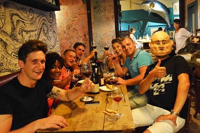 自然派ワインビストロ・ブリュタルBistro BRUTALにて 若手ボジョレ軍団 軍団若大将のDomaine Coquelet ドメーヌ・コクレのDamienダミアン・コクレ(右端の仮面)、 ボジョレからKeke Descombes ケケ・デコンブ、Anthony Thevenet アントニー・テヴネなどボジョレ軍団もワインビストロ「ブリュタルBRUTAL」に来ていた。 私の大好きなアラン・カステックスのマグナムを大事そうに抱えた、ブリュタルの店の人。 名前は知らないけど自然派見本市会場でよく見る人。