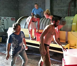 久々の肉体労働、マールが入ったケースを圧搾機まで               運ぶ作業 -no3