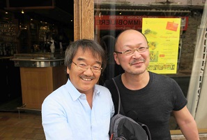 ボーヌを後にしてLyonリヨンまで移動の途中、あまりにもいい天気なので高速道路A6号線をBellevilleベルヴィルで下りた。萬谷さんはまだ一度もボジョレには行ったことがないとのことだった。 そして、現在ある自然派ワインの世界の原点になったモルゴン村に立ち寄り、マルセルに挨拶に行こうということになった。 Morgon村の中心に教会広場がある。 その近所に私がよく泊まるカフェ・レストラン・ホテル L’atelier de Cuisine ラトリエ・ド・キュイジンヌがある。 ここに多くの醸造家が一杯ひっかけにやって来る。 チョット危険な場所でもある。例えば8人の醸造達が居て一人が奢り出すと全員が奢り合いする習慣がある。 だから最低8杯は飲まなければならない。途中で抜ける訳にはいかない。 時間もかかるし、結構酔っ払ってしまう。   今日は、アラン・シャペルの息子さんのダヴィッドさんが農作業から帰ってきてきたところだった。 醸造家に転身して2年目。なかなか美味しいワインを造る。そのワインを一杯ひっかけた。 そして、もう一つの目的である。マルセル・ラピエールさんに挨拶に行った。 Côte de Pyコート・ド・ピィの麓にある墓地にお墓まいりに行った。 マルセルのお墓には葡萄木が4本植えられている。 感謝の念をマルセルに伝えたくて、手を合わせた。 現在、こんなカタチで美味しい自然派ワインを飲めるのは、あなたのお蔭です。 Merci Marcel.