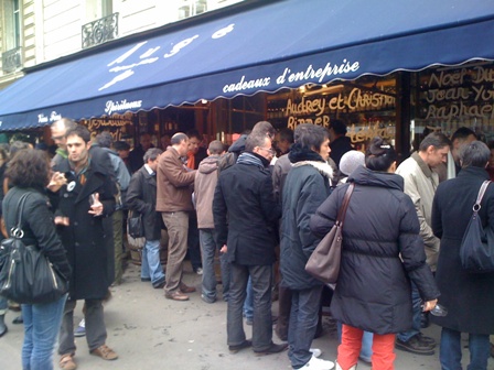 ルンルン気分で今日は(今日も?!)美味しいワインを頂いてきます! 相変わらず今日も人がいっぱい・・・ Cave Augé 116 Boulevard Haussmann 75008 Paris TEL : 01 45 22 16 97 Metro : St Augustin (9番線) 何でもあります!パリで一番人気の自然派ワイン屋さん! Domaine Stéphane Tissot (Jura)*ドメーヌ・ステファン・ティソ(ジュラ) 今日は私のほうからあの例のフレーズを! 『人生は楽しいか?』と聞いたらステファンは・・・ 『あれ?!聞いたことあるセリフだぞ・・・?!とりあえず飲んでみて!』と早速試飲開始! Graviers 2007*グラビエ2007はシャルドネ100%。 砂利質のテロワールから生まれたこのワインはとてもミネラルでキリッとした酸味が強い!長く残る後味はとにかく複雑でフレッシュ! Barberon 2007*バルブロン2007 粘土質の地質で育てられたシャルドネを使用。先ほどのワインとは全然違う!フレッシュ感はあるのだけれども、もっとドライ・フルーツの香りが強く、スパイシー。 Tour de Curon*ツール・ド・キュロン シャルドネ100%。 酸味とフルーツジャムの香りがとても綺麗なバランスを与え、最後に少し残る苦味がまた最高!飲んでいるとダンダンと何かつまみたくなる、唾が出てくる美味しいワインです! Singulier 2007*サンギュリエ2007 トルソー100%。 優しくまろやかな口当たり・・そして爽やかさもあり、とても飲みやすいワイン。 2007年はとても綺麗な年。甘みが濃縮されていながらも、フレッシュ感があり、最高なヴィンテージです! Barberon 2008*バルブロン2008 ピノ・ノワール。 滑らかで気持良い喉越しが印象的。最後には蕩けたタンニンとスパイシーな苦さが混ざって・・・美味しい~! Arbois Traminer 2008*アルボワ・トラミナー2008 今日飲んだ中でも一番複雑な香りがするワイン。。お花の香り、アブリコットやハチミツの甘い口当たり、そして最後はスパイシー・・・という、とても奥深い一品。でもこのフルーティーさは誰にも真似できません!! そしてそして最後には私が大好きな甘口ワインの Spirale*スピラルとPMG。甘口なんだけど、綺麗なさわやか感があるので全然重くない!これだったら何杯でも飲んでしまえる、お勧めワインです! Tissotのワインについてのお問い合わせは、こちらまでお願いします: BMO 株式会社 TEL : 03-5459-4243 FAX:03-5459-4248 MAIL: wine@bmo-wine.com http://www.bmo-wine.com そして続いてはDomaine Overnoy Houillon*ドメーヌ・オベルノワ・ウイヨン(ジュラ) シャルドネ2007年 トーストとアブリコットの香りが凄うピュアな感じのワイン!エレガントで繊細な味わいなのに、テロワールのパワフルさが伝わってくる伝統的なワイン。 Savagnin 1998 + 2003*サヴァニャン1998 + 2003 ウイヤージュされたサヴァニャン・ワインを! 2003年はとりあえず濃厚・・・!完熟されたフルーツの旨さがギッシリと詰め込まれた一品!そして1998年は・・・もう違う世界のワイン!瓶詰めはいつしたの?と聞いたら『う~ん・・・2年前の一月だよ』と言うことは・・・10年も樽で眠っていたの?!と驚き!! とてもミネラルで火打ち石の香りが強く、まさにテロワールの味を引き出した感じ。そして何といってもこの綺麗な酸味と長い長~い後味が凄い! Overnoyのワインについてのお問い合わせは、こちらまでお願いします: 野村ユニソン株式会社 TEL : 03-3538-7854 FAX : 03-3538-7855 MAIL : wine@nomura-g.co.jp http://www.nomura-g.co.jp 次はアルザス・ワインをアタック! Domaine Gérard Schueller*ドメーヌ・ジェラール・シュレール の Bruno Schueller*ブルノ・シュレール Pinot Noir 2008*ピノ・ノワール2008 とても飲みやすく、グイグイといけてしまう感じ。優しくてエレガントなピノですが、やはりこの地区にすると力強い!ブリュノーの性格が一瞬で分かってしまいます! Pinot Gris 2008*ピノ・グリ2008 香りは熟成された甘いフルーツなのに・・・口に含むと全然正反対なワインが! アロマの濃厚な感じとはウラハラに、喉を通り越したらスパイシーで辛口ワインだった!これはテロワールのミネラル感が強い! どうして?と聞いたところ、『これはわざとだよ!今度ドメーヌに遊びに来たら教えてあげるよ!』と・・・このギャップが気になる人は、是非アルザスまで一緒に行きましょう! Schuellerのワインについてのお問い合わせは、こちらまでお願いします: 株式会社エスポア TEL : 06-6384-3319 […]