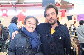 ★Ivo et Julieイヴォとジュリ日本より生還★ この2人、日本から帰ったばかり。まだ、日本の香り、ピオッシュのパルファンが残っている。 Escarpoletteエスカルポレット醸造のIvoイヴォ Julie Brosselinジュリ・ブロスラン この二人、日本出発の前夜、レストラン、ビストロをハシゴして最後に林さんのピオッシュに行った。 それだけは避けなければならないことをやってしまった二人。 当然、朝帰り。目覚ましをかけたけど、無意識に消した。 目が覚めたのが、飛行出発時間のほぼ一時間チョット前、即飛行場に駆けつけて何とかギリギリで飛び乗った。 イアー、危なかった!と目を大きくして話していた。 二人ともまだ日本から昨日着いたばかりで流石にチョットお疲れの顔。 (特にジュリーは睡眠時間を最低8時間が必要なタイプ) 今日は別々にスタンドを設けてやっていた。でもIvoのスタンドにはジュリのワインも置いてあった。 ★La Petite Pépée ラ・プティトゥ・ペペ(Escarpoletteエスカルポレット醸造) イヴォのワインで面白いは、グルナッシュ・ノワール品種を直プレスで絞って発酵させたBlanc de Noirが面白い。 ほのかに色がでていてややオレンジっぽい。8月に収穫して酸を残している。 どことなくタンニンらしいものを感じる。ユニークな白 ★Mata Hariマタ ハリ(Julie Brosselinジュリー・ブロスラン) 日本語のような名前。意味は聞いたけど忘れました。誰かが答えてくれるでしょう。 グルナッシュ・ブランのマセラッション。美しいオレンジ系黄金色。 タンニンもあり、スパイシーな料理、カレー風味、サフラン風味、パエリャにもいいでしょう。 この二人、常に何か新しいワインへの挑戦・試作をやっている。 Montpeyrouxモンペイル村には、ラングドックワインを大変革させた偉大なるレグリエール醸造のコメイラスさんが居た村。 その変革精神は、今もなお次世代のIvoイヴォ達に引き継がれて、次々と新しいイノベーションが行われている。