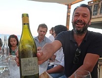 (この夏の時期の醸造家の日常) 南仏の地中海沿いに美しく長い浜辺を持っている街Loucateルカトという小さな街がある。 位置的には、Narbonneナルボンヌの街とPerpignanペルプニャンの街の真ん中。 その浜に自然派ワインが飲める海の家がある。5月頃から9月末ごろまで営業している。 海のビストロのようなもの。Poulpeプルプ、タコの意。 砂浜に建てた海の家。前面に地中海がひろがる最高の眺め。そこで簡単な軽食とワインが飲める。 今夜、3社の醸造家ファミリーがやって来た。 CorbieresコルビエールのMaxime Magnonマキシム・マニョン LimouxリムーのHautes Terres オート・テール醸造のGilles Azamジルアザム RoussionのLa tour de FranceのRouge Gorgesルージュ・ゴルジュ醸造のシリルと子供達 Parisのワイン愛好家、イタリアン・レストランの夫妻。 この季節は、南仏の醸造家達は太陽が昇る朝5時過ぎから午後13時ごろまで働く。 午後は暑過ぎて畑には出れない。夕方チョット日差しが弱くなったころ小一時間ほど働ける。 夜は、時々近所の気心のあった醸造家同士でアペリティフを楽しむ。お互いの畑の情報交換などしながら楽しむ大切な時間。 2018年は春から6月末まで続いた雨で湿気がありベト病など色んな病気が発生している。 例年より倍の畑仕事が必要な年になっている。 7月に入って晴天が続いているので、乾燥してきて何とか助かっている、とのこと。 近隣の醸造家が何をやっているか、実に参考になる。大切な情報交換だ。 今夜はここLoucateルカトに集まって自分達のワインが揃っている浜辺ビストロPoulpeプルプにやって来た。 こんな海の家のようなところで、自然派ワインが飲めるようになったとは嬉しい限りだ。 自然派ワインもよく浸透したものだ、と思う。 ルシオン地方のCh-Lagairreシャトー・ラゲールがあったのが嬉しかった。 シリルのRouge Gorgesルージュ・ゴルジュの繊細さが素晴らしい。 マキシム・マニョンのMetisse17メティスは別格に美味しい。 一人で来ても、ただ海を見ながら何時間でも美味しいワインを飲んでいられることろだ。 いいところを教えてもらった。 皆、毎日、山の中で畑作業をしている。時々は、気の合った仲間たちとこんな息抜きがいい。