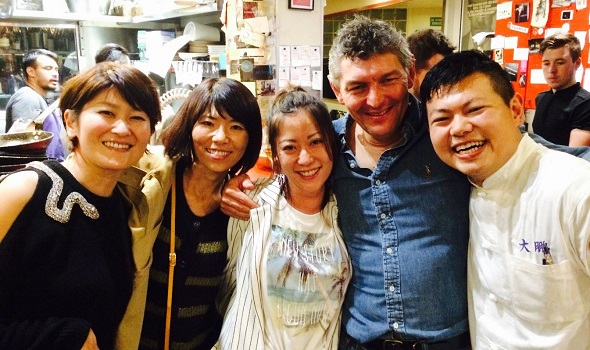 京都の伝統的中華料理店「大鵬」の渡辺幸樹シェフがパリのヴェール・ヴォレでワインと共演 ピジョン鳩の骨をきれいにしゃぶっている時、いきなりシャンパーニュの醸造元ジャック・ラセーニュの生産者エマニュエル・ラセーニュが登場! この夏、彼が来日した際に大鵬へ行き、シェフの料理に感動し、渡辺シェフと昼から飲み交わしたらしい。今日はこのイベントを耳にし、わざわざシャンパーニュから渡辺シェフに会いに来たという! 食事も進み、今度はボルチーニ、豚の胸肉とごはんを蓮の葉に巻いて炊いたものがサーヴされる。 そこで、エマニュエルがボトルも持って私達の席に来る。 「これはちょっと変なモノだ。」と、まるで子供のようなキラキラした目で注いでくれる。 シャンペン・ボトルから流れ出てくる液体はアンバー色に輝き、とてもきれいな泡がグラスの中で踊る。アールグレイ、干したアプリコット、東洋スパイスのような上品な香りが漂う。 なんと、エマニュエル作のオレンジ・ワインをシャンパーニュ方式で醸造したものでした! シャルドネを10日間醸して、あとは通常のシャンパーニュのように造る。 ラセーニュ独特のキリッとした酸と塩味、そして、エキゾチックな口当たりがとても美味しい!こんな遊び心詰まったシャンパーニュの生産者は中々いないですね。 ちょうど食べているキノコご飯と、ぴったり。旨みと旨み、エキゾチックな香りどうしの混じりあいです。 お腹もそろそろいっぱいになり始めたときにちょうどいいデザートのお出ましです。 さっぱりした杏仁豆腐!これもエマニュエルのワインと相性がいいです。 最後はシェフとエマニュエルのみんなで乾杯!素晴らしい一晩です! 渡辺さんの中華料理はなぜこんなに自然派ワインと合うのだろう。 旨みと旨みのマリアージュ、テロワールとテロワール、そして人と人。渡辺さんと生産者は絶対互いに気が合う。このことが、料理とワインの時点でも現れるのかも。 「大鵬」の渡辺シェフ、とても明るく優しいシェフの人格がそのままあふれている素晴らしいお料理なのです。 名店舗のコラボでした。 渡辺シェフ、感動とエモーションありがとうございました! 佐竹さん、誘っていただいてありがとうございました!