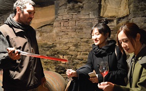 (Dominique DERAIN 醸造、SEXTAN セクスタン醸造、Bourgogne-Saint Aubinブルゴーニュ、サントーバン) この時期に来ると瓶詰前の16年産の一部と、発酵が終わった樽に入ったばかりの17年産の二つを比較試飲できる。 ダジャレを連発して笑わせるドミニック、その横いつものダジャレを薄笑いしながらモクモクと自分が醸した17年産を真剣に検証試飲を続けるジュリアン。この二人は名コンビだ。 熱心なRebeccaレベッカさんは、このドゥランのミネラルがきいたブルゴーニュが大好きだ。 16年産と17年産をどうしても試飲したかった。あまりにもの美味しさにレベッカもバーバラも驚く。 16年産も素晴らしいできだった。17年産は更に充実していた。 色は薄めなのに、液体の旨味、酸とミネラル、果実味のバランスが絶妙な繊細さであった。 ジュリアンの醸造センスが光っている。 ピノのダイレクトプレスのロゼ、白の軽いマセラッション。 ジュラ方式の手で除梗の葡萄粒丸ご発酵など、トビッキリ美味しい。 ウーン、Magnifique!!本当に素晴らしい!!