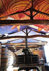 【自然派の原点Lapierreラピエール醸造】 ラピエール家の醸造に入るといつもスーッとした空気を感じる。 天井には、半分は太陽、半分は夜の月をイメージした絵が描かれている。 美しい。 今、丁度、絞り中の18年産が垂直圧搾機からチョロチョロと音をたてて流れていた。 まだ、糖分が沢山のこっている。これからまだ発酵槽にもどされて発酵が続く液体だ。 18年、流石に太陽が強かっただけに、果実の濃縮感が凄い。でも酸がキッチリ乗っているのが 今年の特徴だ。 美味しい!この段階でエモーションが感じられる。素晴らしいワインになるだろう! Lapierreラピエール醸造の2018年は買いですよ!!
