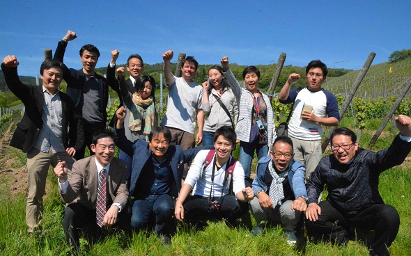 今年も素晴らしいメンバーがやって来た。 皆、それぞれのやり方で、それぞれの街でコツコツと本物ワインを広めている販売最前線の人達だ。 有名、無名、大小関係なく、一所懸命に本物ワインを紹介している。 売れる土壌を造りあげる為に、現場の情報を収集にやって来た。 よくあるインポーターの招待旅行ではない。 自分で経費を払って、中にはお店を10日間も閉めてやって来たメンバーもいる。 気合の入れ方が違う。 アルザスの畑を自分の足で歩き。 急斜面、花崗岩が風化して砂状になった土壌に触れ、太陽の当たり方、風の流れなど、葡萄園のミクロクリマ(微気象)を自分の体で感じている。今年はすでに乾燥が始まっている。 このアルザスの葡萄たちはこの美しい街並みが歴史の中で壊されたり、再生したりしてきた歴史を知っている。 そんな環境を通して今のアルザスワインがある。アルザス人はこの歴史を決して忘れていない。 彼らと接しているとこのアルザスの歴史が伝わってくる。