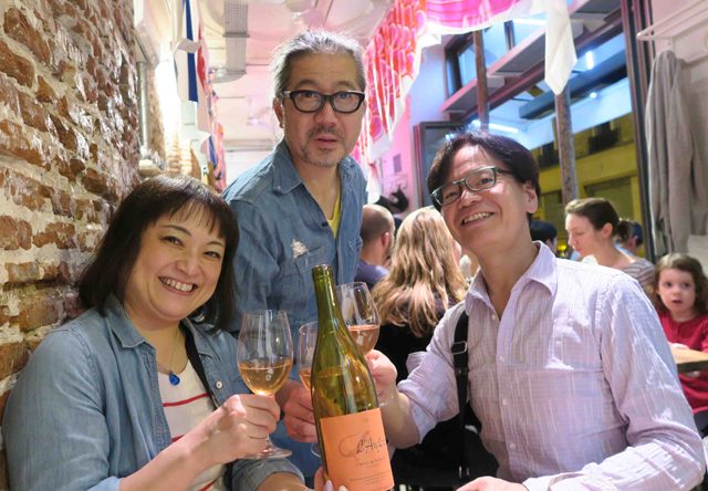 BMOの山田恭二さんがポルトガルからパリに着きました。ポルトガルで美味しいものを食べ過ぎの山田夫妻、今夜はパリ一美味しいうどんの国虎屋で一杯。オーナーの根本さん特別グラスを持ってきてくれました。野本さんもワイン大好き人間。ラングロールで乾杯!! オツマミにおでん、おでんの旨味とシュマン・ド・ラ・ブリュンヌの石灰岩盤からのミネラル旨味が全く同じ。 塩味を感じるのでカラスニとも合わせました   天ぷら盛合せと冷やしうどんをラングロールをやりながらツルとやりました。 しかし、国虎屋も天ぷらの腕を随分あげました。美味しい天ぷらにコシのある高知風うどんを頂きました。パリでこんなに美味しいうどんを食べられるとは幸せなこと。 明日は山田さんとアルザス訪問予定。 BMOの山田さん 日本で自然派ワインを広める為の