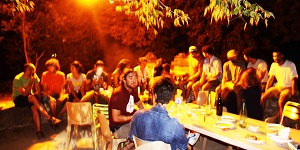 収穫を一か月後に控え、収穫の無事を祈りながらお互いの健闘を誓う前夜祭のようなもの。 さあ、17時に始まった試飲会、21時を周ってソロソロ真面目なテースティングは終了。 皆、集まって楽しい交流の時間。 楽しみながらの会話の中で、栽培上、醸造上でもヒントが飛び出してくる。 こうして、少しづつ進化してくる。 こんなコミニティーの共生の中で、自然派が増えてきた。 造り手、ワイン屋、ビストロ・レストラン業者、バイヤー、ソムリエ、愛好家、皆が一緒になって 交流して、お互いの理解を深めて進んでいく自然派ワインの世界。 ワインは美味しく、造る人にとっても優しく、飲む人にも優しく、地球にもやさしい、こんな健全な世界はなかなかない。 それぞれが、人生を思いっきり楽しむ。 ここには、妙なプライド、妙な優劣、階級、はない。 日本からもBMOトロワザムールのウエタ・アユミさんが日本を代表して参戦。 そして、最後は朝までディスコで夏祭りフィーバーだ!