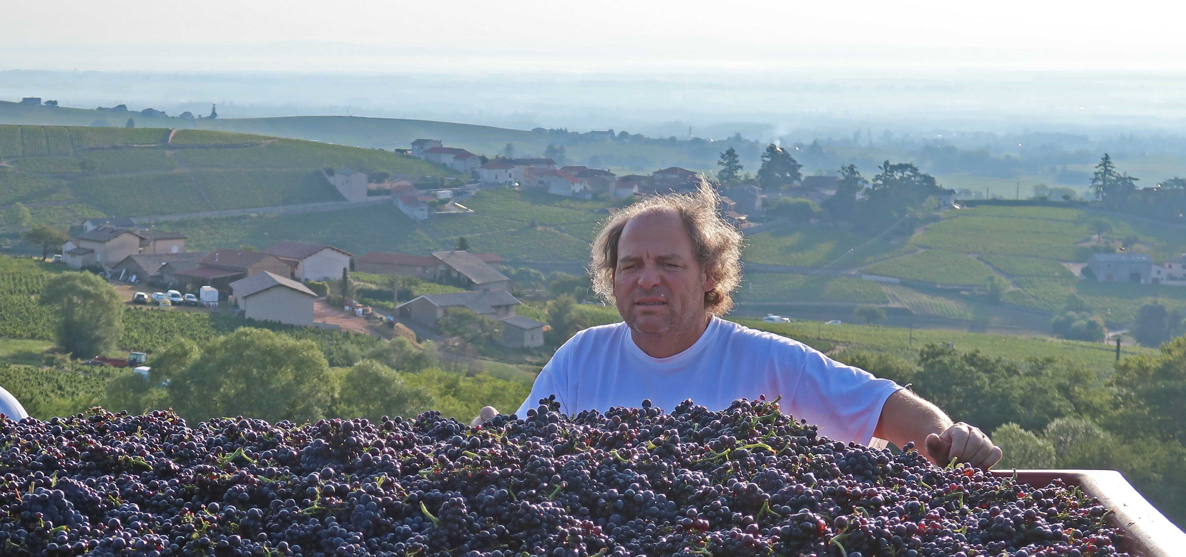 モルゴン村の熊、ヌヌーンがパワフルに収穫を終えた! 今、ボジョレで最も勢いのあるファミリーは?と問えば? デコンブ・ファミリーである。 長男のダミアンは今年から完璧に独立。次男ケビンも今年から独自のワインを造りだした。二人の息子がモルゴン村を中心に畑を借り集めている。飛ぶ鳥を落とす勢いのデコンブファミリーである。 勿論、中心はゴットファーッザー的存在のお父さんジョルジュである。ダミアンもケビンもお父さんを尊敬レスペクトしている。 今でも、畑仕事は必要な時はお互いに協力し合ってやっている。この辺がデコンブ醸造の力強いところである。 今年は大変な年だった。7月の36度という猛暑で葡萄が焼けてしまった。モルゴン村には強烈な雹が降った。傷んだ葡萄がある中 8月の冷夏、雨と曇り空と湿気で葡萄が腐りかけそうだった。デコンブ家の3人は8月のバカンスを返上して葡萄園に張り付いて畑仕事に徹していた。 標高の高いところに葡萄園があるデコンブ デコンブの収穫はいつも他の自然派蔵より遅い。標高の高いことも遅熟になる。パワフルさを狙うデコンブは完熟を待つ。今年は皆よりほぼ一週間遅く始めた。真夏の畑仕事、収穫を待ったお蔭で本当に良く熟した葡萄を収穫できた。 標高が高いのでいつも酸が残る。 パワフルさとピシっとしまった酸が共存するデコンブならではのスタイルのワインだ! デコンブ・ヌーヴォは絶対に見逃せない!!   ワインは人だ、造り手に似てくる ジョルジュ・デコンブのワインはこの体格のように力強い。 外観のわりに繊細な神経を持ち合わせている。 ピリっと締まった酸はジョルジュの繊細な性格を現わしている。デコンブのワインはパリのビストロで大好評である。 多くの自然派醸造家が外国への輸出に頼っている中、デコンブのワインはフランス国内、パリで大人気なのである。ジョルジュはヌヌーンの愛称でパリ・ワインビストロで愛されている。ここの20年間に渡って毎週一回、パリまで配達にやって来る。パリのビストロの顧客までヌヌーンの名が知れ渡っている。ヌヌーンが店に入ると大歓声が上がる。 決めた事は何があっても貫徹する性格、 だからデコンブの味覚にブレはない!! ⇚8月15日の葡萄。標高の高いデコンブの葡萄はかなり熟成が遅れていた。この時に収穫は9月の中旬以降と決めていた。 ⇚9月15日に再訪問。他の自然派醸造家は皆、収穫を初めていた。もう収穫を終わった醸造家もいた。しかし、デコンブは動かなかった。 ⇒ 9月18日 やっとデコンブが動いた。自分の狙った熟度に達した。収穫を開始。どんなに周りが動いてもデコンブは動揺しない。ジット忍耐で狙ったもの待つ。 だからデコンブの味覚にブレない。 収穫風景 次々と運び込まれてくる葡萄を、再チェックして、傷んだ葡萄を排除するのはベテランの仕事。 この段階で徹底的に選別作業をやる。SO2無添加で自然醸造ができるのは 健全な葡萄のみが 発酵槽に入るから。 ほぼ10日間の収穫人のエネルギーを支えるのは奥さんのジスレンヌの料理だ。30名近い収穫人のち20名はデコンブ醸造に寝泊まりの合宿生活となる。体力的にかなり厳しい仕事を 終えた後は、ジスレンヌの美味しい料理と笑顔で収穫人の心が和んでいく。 そして、時々、醸造所に設置されているビストロで デコンブのワインで英気をやしなう。   収穫風景 2   全収穫中、快晴に恵まれ収穫を終わることができた。14年 デコンブ・ヌーヴォは典型的なデコンブ・スタイルになるだろう。 軽めのヌーヴォーが多い中、確りした体格を備えたデコンブ・スタイルを飲まずして 14年ヌーヴォーを語れない!!