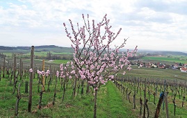 アルザス・オステルタグ Grand cru 畑の中で、一本だけ可憐に咲く桜!