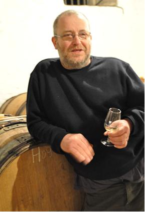 収穫後のDARD ET RIBOダール・エ・リボを訪門 10月31日 リヨンから高速A7でターン・エルミタージで降り、収穫後のホッと一息のダール・エ・リボを訪ねた。土曜日にもかかわらず醸造所で訪問者に試飲させているルネ・ジャンに会う。ここも訪問者が絶えない。私が来る時は必ず数人と重なる。超人気蔵だ。 今日はインポーターの野村ユニソン社の萩野さんと一緒だ。ルネジャンはあの人懐っこい笑顔で迎えてくれた。ルネ・ジャンは個人的に最も好きな醸造家の一人だ。 人間味豊かな感受性を備えて、限りなく自然体だ。一緒にいて実に心地よい。 2009年は? 『今年の葡萄は選別作業をやる必要が全くなかった。まれにみる健全な状態だった。白ワインがチョと熟しすぎた感があるけど、マアマアだよ』自分で試飲してみなよ!と醸造所の奥を銀のカーテンで区切って温度が下がり過ぎないようにしている。白ワインの発酵中の樽はすべてその密室に置かれていた。2週間前の寒波で-3度まで下がった。白のアルコール発酵が止まりかけてしまった。それで特別部屋を作ったとのこと。 ST-JOSEPH BLANC PITROUまだ濁り酒で残糖が残っていてほんのり甘い。 HERMITAGE BLANC BATIES酸も残っていて最高にバランス良い。この段階での評価は難しいけど、どれもパワフルな白だった。やはり根っこが深く入っているVV古木のものは酸もきっちり残っていた。 2009年ROUGE・赤のダール・エ・リボは偉大なる年だ!!