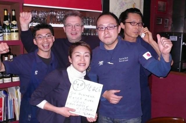 今存在する自然派生産者の中でも、その創生期から一貫した考えでワイン造りを行っている、ダール・エ・ リボのルネ・ジャン・ダールが来日した。ホテルで待ち合わせたのだが、ちょうどホテルの温泉に入って、 髪も髭も整え、なんだかこざっぱりとした感じで、驚いた。。。驚いたと言っても、別に、今までが汚かったわけではない、あまり気にしなかったのだろう。見るからに自然、それがルネ・ジャンのイメージだった。 ワインも、昔より、各段に洗練されたニュアンスを持つようになっている。昔のような還元の強い造りのファンも本人を含め多数いるが、今では、もっと多くの人たちに、このナチュラルなぶどうの旨味を伝えることができるであろう。(その還元の強いワインが年を重ね、素晴らしく変遷して行くのには驚かされていたが) さて、今回の滞在は、約10日間、東京、長野、大阪、札幌、福岡、長崎 と超ハードなスケジュールである。 この日は、まず挨拶をかねて、八丁堀「Gare de Lyon」に伺った。 挨拶がアぺリティフになり、いつの間にか、スタッフとともに、3本飲んでいた。。。。 まさに、ちょっと一杯のつもりが。。。気がついたらいい気分になっていた。そんなGare de lyonの安生店長の自然派ワインとの出会いは、ダール・エ・リボのワインとの出会いから始まったという。 かなりいい気分で、丸の内のブラッスリー・オザミのディナー・パティーへ。 ここは、ご存じオザミワールドの店舗、オザミとダ—ル・エ・リボとの関係は古く深く、オーナーの 丸山 宏人氏が、昔、自転車でぶどう畑を周っている際に、訪問したのが始まり、この出会いがきっかけで、 日本にも輸入されることとなったわけである。また、オザミの松岡さんは、2006年にドメーヌで収穫を行い、 その一生懸命な姿を見て、一段とお互いの信頼関係を深めている。 そんなわけで、ブラッスリー・オザミでのイベント超盛り上がり。出されたワインは、 ☆Saint Peray Methode Traditonnel (Les Champs Libre) ☆C’est le Printemps Crose Hermitage Rouge 2006 (Dard et Ribo) ☆Croze Hermitage Rouge 2005 (Dard et Ribo) ☆ Crose Hermitage Blanc 2005 (Dard et Ribo) ☆ Crose Hermitage Blanc Carrieres 2005 (Dard et Ribo) ☆ Saint Joseph Rouge 2005(Dard et Ribo) ☆Hermitage Rouge 2005 (Dard et Ribo) 料理はシェフの渾身のメニュー。ワインとの相性も最高で、最後まで大盛り上がりであった。 私は、12時で逃げ去ったが、その後も宴は続き、朝4時ラーメンコースで終焉したようだ。 大阪では、心斎橋Passion et Nature でパテーィー。 そこには、昨年8月22日に生まれたアンジュ・マリーちゃんも参加。大きなぱっちりとした目が とてもかわいく、みんなのアイドルとなっていた。 札幌では、北海道の海の幸を堪能。ミネラルかつ凝縮した果実味のサンジョゼフ・ブランとウニや カ二の相性は最高。ルネ・ジャンも大喜びで食べていました。どうもご馳走さまでした。 今回、ルネ・ジャンが何度も口にした目指すべきワインは「飲みやすいワイン」、そして 旨味に溢れるワイン。 きれいななった造りは、醸造所、熟成庫の温度管理をしっかり行い、かつ状況みながら澱挽きを することによって、きれいで自然なワイン造りができるという。 そして、まだ、まだ終りはなく、美味しいワインを造るために努力していくという。 今回、昼、夜、ずーっとダール・エ・リボのワインを飲んでいたが、一度も喉にひっかかることなく、 悪酔いすることなく、朝もさわやかであった。まさに身体で感じる自然な造りである。 ダール・エ・リボの生産量の60%は、パリのヴェール・ヴォレなどのワインバー、ビストロで消費されている。 そして20%は日本で飲まれている。 フランスでも、日本でも、自然派ワインファンを魅了してやまないワインである。 今日もみんなで「1、2、3、ダール!!!」