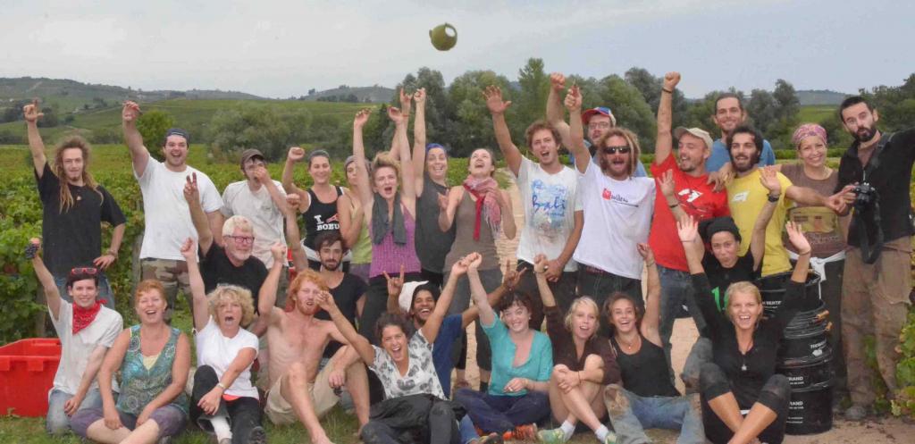 自然派ワインの源流Lapierreラピエール家の収穫・ボジョレ 収穫が始まって一週間程すぎた頃、収穫人の疲れが溜まってきた頃、さらなる結束とエネルギーの補給にアペロを皆で楽しむ。 今年は25か国の若者、フランス、オランダ、アメリカ、カナダ、ブラジル、東欧諸国、日本、など世界中の人達が集まって収穫している。 一週間も朝、昼、晩と寝食を共にしていると、お互いがもう分かっている。 中には、もう15年連続で参加している人もいる。 ニューヨークの有名レストランの女性ソムリエールも来ていた。 必ず楽器を演奏する人達が混じっていて、夜の食事の後は演奏会になる。 相変わらず元気なマリー(故マルセル・ラピエールの奥さん)、雰囲気を盛り上げる。 このマリーさんも若き頃、収穫人として北フランスのメッツからやって来た。 その時にマルセルと巡り逢った。依頼ずーっとモルゴンにいて、マチュが生まれ、また次世代も生まれている。 また、そんな中に混じって、超プロ集団のチームもいる。 20名分の収穫量をたったの5人でやってしまうプロ集団がいる。 早いだけでなく、良い葡萄と中庸の葡萄を仕分けしながらキッチリと進んでいく。 私も彼らと一緒に収穫したことがある。 物凄いスピードで確実に進んでいく。 私の6年間、ポムロルで収穫した経験もあり、スピードでは自信があったけど、単なるアマチアであったことを思い知らされた経験がある。 マチュも大切な区画は彼らに任せている。 そんな、プロ、アマ、音楽家、若い人、チョット年を過ぎた人、が混ざって一同に集まって、収穫するのがラピエール家の伝統だ。 このボジョレの収穫文化は無形文化財と云える。 今は、少しづつ消えていっている。 収穫は単に機械的に葡萄を穫るのみにあらず。 フランスの深いところにある文化そのもの。異質文化交流の原型だ。 この喜び、歓喜、交流のDNAがワインに入っていくのは当然のこと。 ラピエールのワインには、特別なエモーションが流れている。 元気つけたいとき時、勇気がチョット欲しい時、嬉しい時、是非、一本開けてください。 大切なものが動き出します。