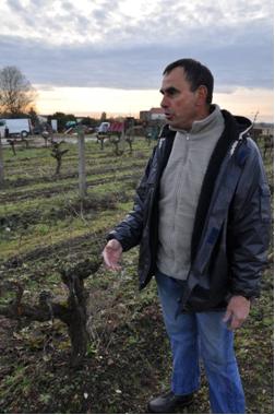 まだ寒い2月の上旬。関西自然派然派ワイン軍団、ナジャの米沢さん、ワインショップFUJIMARUの藤丸さんをはじめとするロワール横断弾丸ツアーを開催した。 L’Ange Vin への訪問は、すでにホームページにもアップしたが、今回の訪問は、もちろん、それだけではない。ロワールのミュスカデからサンセールまで横断走破した弾丸ツアーであった。 2月4日AM5:00 まだ真っ暗なパリを出発。前夜、レストランで遅くまで食事をしていた、関西自然派ワイン軍団のリーダー、藤丸さん、ナジャの米沢さん、マツケン食堂松本さん、小原さん、うずら屋の宮本さん、そして独立開店前の徳大寺さんたちには、ホテルに戻って、マバタキをしたら、さあ、出発! というような、出発からハードな旅となった。パリからナントまで約500km、高速を使って4時間、一路、ミュスカデの偉大で謙虚な生産者、セネシャリエールに向かった。 **Domaine de la Senechaliere** この時期のフランスの日の出は遅い。8時でも、まだ暗い。 到着時間の9時前頃から、やっと陽が昇り、朝焼けの中のすがすがしい訪問となった。 ドメ―ヌに着くと、すでにぶどう畑の中を 興味深そうに歩きまわっているマルク・ぺノさんがいた。 たかがミュスカデ、されど、このミュスカデは、そこんじょそこらのミュスカデと違うのは周知の事実。 シスト質の岩盤と粘土質も混ざる土壌、その下は、ミカシストといわれる、とても硬い岩盤で、もともとは太古の昔、この辺は、ヨーロッパの中でも相当標高の高い山岳地帯だったそうである。 ぶどう畑を歩くと、石英や、火打石などが、多く転がっていて、ミネラル感あふれるワインの根源が理解できる。 また、除草剤や化学肥料を使わない、ぶどう畑は、活き活きしており、なんと70種類の違う植物が共生しているという。 ワインの品質などとは関係なく、他の理由で一度は倒産してしまったドメ―ヌが、日本の熱烈的なファン達のおかげで、今、また再起を始めている。 2009年は、収穫量は少なかったが、とても熟度の高いぶどうが収穫できたという。 通常のこの地区の生産者は、早めに収穫をして、酸を残し補糖をしてアルコールを上げるなどするが、なんと彼の2009年のフォールブランシュの糖度は11.5度になったという。この熟度とミネラル、これがセネシャリエールの持ち味である。 2009年のFolle Branche、Boheme、Miss Terre、Nuitageをタンクから試飲したが、Folle Brancheは、とてもアロマテックで、チャーミングな脂質を持っていた。 Bohemeは、まだ全て発酵が終らず、残糖が10グラムあった。工業的な造りでは、通常3週間ほどで終わるアルコール発酵であるが、ここでは、自然酵母でゆっくりと6カ月かけて発酵を行うのである。このいろんな自然酵母の動き、時間をかけた無理のない発酵が、セネシャリエールの優しい味わいとなるのである。 Miss Terreは、さすが樹齢が古いミュスカデのぶどうらしく、感熟度を感じる凝縮、素晴らしい!2009年の収穫量はたった20hl/haだという。 Nuitageは、あまりアロマの無いミュスカデというぶどう品種から、ぶどうの皮にある旨みを最大限引き出したワイン。 ガスも残っており、それがフレッシュ感を与える。旨い。。。 まだビン詰めしていない2009年だが、日本入荷が待ち遠しい! そのほか、ビン詰めをしている2007年ヴィンテージ、なんとChapeau Melonの初インテージ2001年も試飲させてくれた。 カラフェをして飲んだが、心地よい酸化傾向の香りに、ミネラル感、熟度が高く、厚みもあり、素晴らしいワインであった。ありがとう!マルク・ぺノ !!!あまりに商売気のないそのよどみのない瞳、ピュアな姿、ワイン造りにかける情熱に全員が感動した。 大半の時間をぶどう畑で過ごし、冷え切った身体だったが、温かいマルク・ぺノの受け入れと、ナチュラルなワインが、身体をほっとさせてくれた。 そして、ミュスカデに分かれを告げ、次は、アンジュの生き方も、ワインも超自然派、レ・グリオットに向かった。今日は、3軒の訪問なのだ。急がねば。。。。 **Les Griottes** 午後1時にグリオット到着。 セバスチャンとパトリックが笑顔で迎えてくれた。 1月末から、サロン・ド・ロワールや、ディブ・ボテイユなど試飲会ラッシュであったが、彼らはどの試飲会にも参加せず、ヨーロッパ各国から試飲会にきたお客を、全員自宅で、食事を食べながら歓待したそうである。人ごみ溢れる試飲会のブースで試飲はできても、ちゃんと話はできない、だから自宅で、食事をしながら、ワインを飲みながらコミニケーションを取ることが大切なんだとパトリック。 これがグリオットスタイルというわけだ。 そして、今回、日本人グループの到着ということで、この自宅イベントの最終顧客として迎えられたわけだ。 この日のランチの食材は、全てこの村周辺で取れたもの。しかも有機栽培。この村では、村長自ら、日本でいう地産地消の活動に熱心で、地元の人間も、出来得る限り自分達の地区で採れた野菜、果物や、