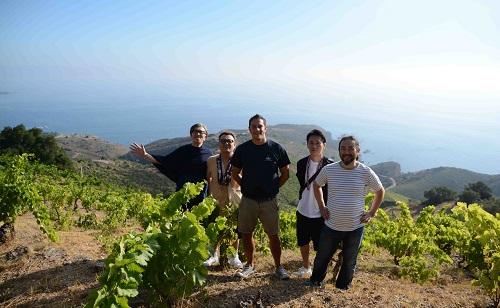 Salon de vin “Indigenes” ワイン見本市アンディジェンヌ Part-10 バニュルスの葡萄園はフランスで最も美しい葡萄園の一つであることは間違いない。 しかし、バニュルスでワイン醸造所を経営することは決して楽なことではない。 色んな困難な条件が揃っている。 ここの一般ワインである濃厚で重いワインやこの地伝統のVIN DOUX NATUREL酒精強化ワイン“Banyuls”が売れない。 今までどうりことをやっていては経営が成り立たない。 既に多くの醸造所、農協までもが倒産している。 バニュルスの山の斜面の葡萄園が引き抜かれたりして景観が変わりつつある。 そんな中でも、勇敢にも参入してくる人達もいる。 すべて自然派ワインの造り手だ。 数年前にローヌの有名ネゴシアンが参入したけど、数年で諦めて撤退している。 理由は簡単だ。 1-急斜面のシスト土壌では畑仕事が機械化できない。 2-よって人的労力によるしかない。人件費がかかる。 3-その労力に比較して生産量が極端に少ない。 4-だから他の地域と比較して価格は当然高くなる。高いと更に売れない。 この4つをクリアできた醸造家のみが生き残れる産地である。 将来的に、小規模で特徴あるトビッキリ美味しい自然派ワインの造り手しか生き残れないだろう。 Bruno DUCHENE ブルノ・デュシェンヌの発案で始まった醸造CAVEの9 CAVESには、多くの新人がこのバニュルスでのワイン造りに挑戦している。 フランスNO1に美しい葡萄園のバニュルスを守るためにも是非頑張ってもらいたい。 独自でこの地に根を張ろうとして参入してきた人達も応援したい。 昨年はピオシュの林さん達が訪問してくれたバニュルス、これからの季節は最高ですよ! 写真の海岸の裏にあるシスト岩盤の山の斜面に葡萄園は広がっている。 葡萄園からの景色は絶景です! 海水浴もできますよ! 遊びに来てください!