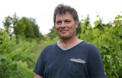 ワイン造りを初めて25年の歳月が、ROMANEAUXのエルヴェ・スオ 歌舞伎役者の“睨み”のような眼光をもっている。目に力がるエルヴェ・スオ。 出身はパリ、つまりパリジャンだった。妻のベアトリスの実家がある北ローヌにきた。 1990年にリヨンにてワイン醸造の勉強をしていた当時にフィリップ・パカレに巡りあった。フィリップ・パカレはビオ・ワイン機関で働いていた。知り合ってすぐにフィリップはPrieure Rhocプリューレ・ロックで畑らき出した。 フィリップに色々聞きながら91年より買い葡萄で少量の試作ワインを造り始めた。 フィリップはロックの仕事で忙しくなってきたので、エルヴェに助言した。 『近所のDard et Riboのルネ・ジャンのところへ研修すべきだ。』と勧められた。 92年にダール・エ・リボ醸造で一年間の研修をした。 93年より正式に自分のワインを造りだした。つまりエルヴェはルネ・ジャンの造りとフィリップ・パカレの二人のワイン造りの流れを継承している。 奥さんのベアトリスの家系は、サン・ジョゼフと北ローヌに畑を所有していた。 北ローヌの山間部に醸造所付きの小さな城をもっていた。 450から480mという標高の高いミクロ・クリマを備えている。 土壌は花崗岩、表面は花崗岩が風化してできた砂で覆われた土壌。標高の高さからキリットした酸、砂質の層から繊細なタッチがワインに表現されている。 最近のRomaneaux ロマノのワインはこの特殊なクリマを真っ直ぐに表現している。何段階もレベルが上がっている。 自然派の超美味の域に入ったROMANEAUXロマノのエルヴェ Romaneaux ロマノがあるArleboscアルルボスク村までは、エルミタージュより25kほどの距離。 日本の箱根のような温泉場へ行くような山間、谷、沢の景色を見ながらクネクネの山道を越えて行く。 まさかこの山間の先に葡萄園があるとは想像もつかないような風景を通り過ぎるとチョットした台地があって、そこに小さなアルルボスク村がある。 その村の入口にお城のような大農家の館がある。 そこがドメーヌ・ロマノである 今日は、日本のインポーターであるDIONYのメンバーとやって来た。 DIONY社は年に数回はフランスまでやって来る。 しかも毎回、メンバーを替えて、できるだけ多くのスタッフに現地経験を積んでもらおうとのことだろう。 一軒は百聞に如かずを実践している企業だ。 素晴らしい社風だ。 来仏したのはもう10日以上前、それにもかかわらずメンバーが皆元気だった。 今回は美人女性が二人メンバーに加わっていて明るい雰囲気。 各自がキッチリと役割が決まっている。通訳に専念する人、 運転と全体を観る人、醸造元の一言一言を筆記する人。 素晴らしいチームワーク。 折角現場で体感したこと、感動したことを帰って日本の皆さんに伝えたいとの意欲が凄い。 銘醸テロワールとHerve SOUHAUTエルヴェ・スオ ここアルデッシュ山間部はガメ品種が昔から主力だった。 ローヌ河右岸のアルデッシュ地方は、130年前までは、つまりフィロキセラ以前は葡萄が至る所で一面に栽培されていた。 フィロキセラ以後、復活せずに野生化してっしまった葡萄園が多い。その中でも、勇気をもって、葡萄栽培を続けていた農家が点在している。ただその葡萄をキッチリと醸造する人が今までいなかった。 だから、アルデッシュのワインの名前は誰も知らなかった。 標高の高く、熟すのも遅いので近所のエルタージやコルナスにようにアルコールが高い濃縮ワインにはならなかった。90年台からの濃縮ワイン至上主義の時代には忘れ去られていた北アルデッシュ山間部であった。 ところが、近年になって繊細、上品さが評価されるようになると、まさに最高のミクロ・クリマを備えている地方だったのである。ただ造り手がいなかった。 RomaneauxのHerve SOUHAUTエルヴェ・スオ登場は、偶然ではないだろう。 フィリップ・パカレとダール・エ・リボの造りの流れを継承したエルヴェは、この北アルデッシュ山間部の土壌の価値を世に知らしめる為に生まれてきたと云っていいだろう。テロワール(花崗岩、高い標高)、葡萄(ガメ)天、あとは人(エルヴェ)が揃えば、凄いことになる。ダイヤモンドも磨かなければただの石ころ。エルヴェはダイヤ原石の様なここの土壌に磨きをかける為にやって来た人だ。 この土地のもつ能力を引き出す役割を引き受けたエルヴェ。 エルヴェエは8h程、畑を借りている。この北アルデッシュ山間部には元貴族の後裔が小さな城と畑を持っている。このアルルボスク村にもそんな貴族の子孫が住んでいる。彼らも最初の頃はよそ者としてエルヴェのことを見ていたが、最近ではエルヴェのやっている事を認めている。畑所有者の方から自分の畑をエルヴェに任せにやって来る。エルヴェ『彼らはお金をとらない いんだ。』代償はできたワインを欲しいようだ。 ワインは予約で一杯で、やるものがなくて困っている様子。 アルデッシュにはこの地方独特のガメ品種が生存している。 葡萄房の粒が小さい