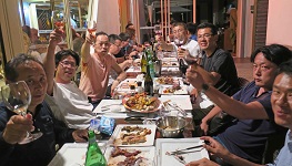 ラングドック地方 / ラ・グランド・モット ハードな合宿を無事終えた安堵感。地中海の魚介類で体を癒す。 勿論、ワインは持ち込み。5日間の訪問で、もらってきたワインを魚介類に合わせながら一挙に消費。 5日間、同じ釜の飯を食べた仲間。業態も同じ方向同志。 このツアーが終わっても繋がる仲間になる。 Parisを残して、実質ツアーの最終晩餐会。 今夜は無礼講でやりましょう。 やっと、皆のお互いの空気が分かって来たところで、残念ながらお別れ。 皆さま、お疲れさまでした。