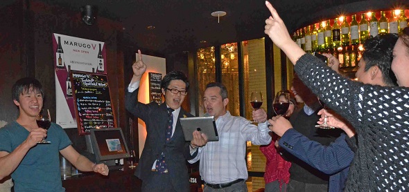 新宿マルゴグループには4年ぶりの訪問のクリストフ。 2013年にマルゴ店でボジョレ・ヌーヴォーのカウントダウン祭りに参加した。 その時も店から店へと歴訪した。 今回は店数が倍に増えていて、全店訪問は無理なほどになっていた。 それでも可能な限り訪問した。 MARUGO一号店では4年ぶりの店長さんと再会を喜んだ。 流石の第一号店、今でもエネルギーに満ちている。 活気がある。超満員状態。 ボジョレ・ヌーヴォーの品揃えも半端ではない。 自然派ヌーヴォーを中心に何と12種類を揃えて、比較試飲ができる。やっぱり流行っている店が勢いが違う。 自分の仲間達のワインがリストされているのを見て喜んでいるクリストフ。 解禁日に造り手のクリストフ・パカレが店に来ているので驚いているお客さんにサービスするクリストフ。 どこまでも、気さくで柔らかな対応力、一切格好をつけない。これがマルセル・ラピエール仕込みのボジョレの哲学の神髄。