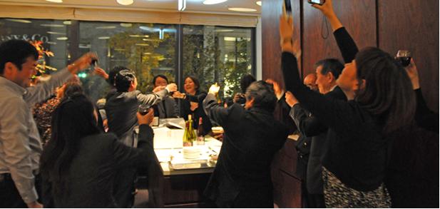東京のど真ん中、丸の内・MIKUNIにてヌーヴォーのカウントダウン マルセル・ラピエール・ヌーヴォー2010年 醸造元は勿論、ヌーヴォー人気トップのマルセル・ラピエールのヌーヴォーでした。流石、洗練されたレストラン・MIKUNIのヌーヴォー・パーティーでした。 ビジネス街のド真ん中、久々のヌーヴォー・パーティーだったとのこと。最近、ヌーヴォー祭りをあまりやらないレストランが多い中、逆に、景気づけに絶好のチャンスとして数年ぶりの開催とのこと。色々趣向を凝らしてのイベントでした。 10時ごろから、お客さんが少しずつ集まってきた。マルセル・ラピエールのもう一つの蔵であるシャトー・カンボンのワインをまず飲みならが24時を待った。カンボンは2009年、マルセルが生涯最高のミレジムと云切った年代でした。濃縮感があってスパイシーささえ感じさせてくれる絶品でした。 ヌーヴォ到着 到着したばかりのヌーヴォーをソムリエ小笠原さんが担いで登場。私は三日前にフランスから日本に到着。ほぼ同時にフランスから出荷したヌーヴォーが今ミクニ・レストランに到着。感無量です。今年も収穫に立ち会って、アッサンブラージにも立ち会った。そのワイン達が無事にレストランまで着いた。 24時、マルセル・ラピエールの遺作となった2010年ヌーヴォー乾杯! 皆に喜んでもらっている。 皆が幸せそうだ! つい一カ月半前まではまだ葡萄だった。 それが今、赤い液体に姿を変えて、皆に 喜びを振りまいている。何て不思議なことだろう。 銀座の寿司幸の杉山さん、 クラブ由美の伊藤さんの司会で楽しく雰囲気を盛り上げて頂きました。 流石、ミクニのお客さんは洗練された楽しい人達ばかりでした。 美味しいヌーヴォーと美味しい料理、楽しいひと時を過ごせました。 モルゴンの大地、収穫人、ソムリエ小笠原さん、 テラ・ヴェールの片岡社長、感謝です! MIKUNIスタッフの皆さん、お世話になりました!