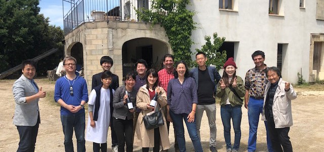 ★ワインは農業! と云う言葉はズバリこの蔵の為にあるのではないかと思う。 50ヘクタールある畑のほぼ半分が葡萄園で、あとは麦や他の野菜の栽培などを行っている。 60年ほど遡ればあのブルゴーニュでさえ、またフランス中が、こんな兼業農家の醸造家が殆どだった。 勿論、畑は馬で耕すのは当たり前。 ★ワインは人! と云う言葉も、ここのファミリーの生き方そのものが、牧歌的で素朴なフランスの農家を再現させたもの。 麦も自分で栽培して、石臼で麦をひいて小麦粉を造り、それで毎日のパンも自分で焼いてしまう。 そんな暖かな家族の生活がワインに表現されている。どこまでも素朴で透明感がある。 そして、誰よりもワインを愛しているヴァンサンがいる。 ★ワインは葡萄園で造る。 健全な葡萄を収穫して自生酵母で発酵。醸造設備は最小必要限のもので充分。これぞ究極の自然なワインである。 葡萄は土着の品種、あのミティークなアラモン品種を主体にサンソー、カリニャン、アリカント品種。 なんて、美味しいんだろう! POMPON ROUGEポンポン・ルージュ! (問合せは日本酒類販売社まで) 日本のレストラン、小売店の皆さんがPOMPONを訪問(日酒販ツアー) 皆さん、東京・パリ・モンペリエ(ラングドック地方)と乗り継いで昨夜に到着。 そして、いきなり超自然な牧歌的農家を訪問。 家の周り広がる50ヘクタールの一部23ヘクタールのテロワールを自分の足で歩いてミクロクリマを体感。 日当たり具合いや、風の流れが微妙に違い、そこに住む微生物・酵母が違う。それぞれの区画のミクロクリマを体感できる。 19年は低気温のせいで2週間ほど例年より成長が遅れている。 そして、シンプルな醸造所の中でテースティング。 そして、おばあちゃん、子供達も学校から昼食を抜き出てきて家族全員で歓待してくれた。 そして、すべて自分達の畑で栽培された野菜ラタトゥイユ、葡萄木を焼いた炭で焼いたソーセージ、をご馳走になった。 勿論、畑で採れたフルーツの自家製のデザートなど心温まる昼食をご馳走になった。 同じテーブルを囲んでひと時を共に過ごす。言葉が違っても、気心が通じ合うものです。 実に大切なことなのです。 馬の扱いを習う。 葡萄木を焼いた炭。 奥さんが焼いたトビッキリ美味しい自家製パン。 おばあちゃんが作ってくれたロールケーキ、チョコレートケーキ、庭で採れたサクランボのタルト。 POMPONポンポンとは、馬の頭についている赤いボンボリのこと。