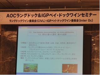 10月4日、東京・渋谷の東急セルリアンタワーにて、SOPEXA主催ラングドックワイン試飲会が開催され、CPVからも参加・ご紹介させて頂いた。 同時にセミナーも行なわれ、ラングドックワイン委員会・輸出部長からラングドックワインについての解説がなされた。特に新しいこととしては2009年からEUの規定が変更になり、従来のヴァンドペイが「IGPペイドック」に、AOCが「AOP」と呼称が改められる。 更に、AOPは3つのカテゴリーに分類され、 ブルゴーニュのAOCと同じように、ピラミッド型のヒエラルキーとなる。(右図参照)⇒ ① グラン・クリュ=限定されたエリアの世界最高級ワイン ② グラン・ヴァン=村名ワイン ③ AOPラングドック=ラングドック全体のアペラシオン これは、高品質なラングドックワインが登場しワインのレベルが上がったことに対応した措置と言えるでしょう。 さて、セミナー後半は試飲です!ズラッと12種類。 ペイドックIGP(従来のVDP)6種類、AOPラングドック(現段階ではAOC)から1種類、グラン・ヴァン3種類、グラン・クリュ2種類と、ピラミッドの各カテゴリーから代表的なものを試飲です。 コメンテーターは、あのイケ面の石田博ソムリエです! CPVがご紹介するワインからも2種類が登場! グラン・ヴァンのカテゴリーでは『カーヴ・カステルモール/ル・カステルモール(赤)』 \1,953 (輸入業者:片岡物産 tel.03-5405-8632/BMO tel.03-5459-4243) 。 石田ソムリエのコメントは、マセラシオンカルボニックしたカリニャンの華やかな香りがとてもよいと、好意的なものでした。 もうひとつCPVご紹介のワインは、『ドメーヌ・ド・モンカルメス(赤)』\5,250 (輸入業者:サンフォニー tel.03-5565-8992)。 こちらはラングドックワインのピラミッドで頂点に位置する“グラン・クリュ”です! 石田ソムリエのコメントは、グラスにサービスされてから1時間経過しても香りがまだまだ少しずつ表れている。これは大きなポテンシャルを持っている証拠だ。また、アルコール度が14度と高いのにもかかわらず全くアルコールを感じさせない程味わい成分が詰まっており、バランスに優れていると評価されておりました。 インポーターブースでご紹介していたワイン イーストライン様ブース ご担当の佐藤さん、にこにこと対応してました。 一押しのワインは 『ドメーヌ・ジャン・バプティスト・セナ』 年々エレガントさが増してます! ●ラ・ニーヌ’08 \2,709 ●オルニカ’09 \2,919 ●ル・ボア・デ・メルヴェイユ’08 \4,074 片岡物産/BMO様ブース ご担当の田丸さんと高野さん。元気いっぱいでした! 一押しのワインは『シャトー・ペシュ・オー』 流通業で上げた利益をすべて最高のワインを造り出すために注ぎ込み、最高のラングドックワインを造ってます。 3つ星「ジャルダン・デ・サンス」で欠かせないワインです! ●テット・ド・ベリエ’06 \5,460 ●キュヴェ・プレステージ’06 \3,675 カーヴ・ド・リラックス様ブース おなじみ大魔王の内藤さん!いつも大爆発。 お薦めは、「リアルワインガイド」で旨安大賞に輝き、売れて売れて、そしてまた売れている『ドメーヌ・ロベール』!どこまでこの勢いが続くんでしょうか? ●ドメーヌ・ロベール、メルロ’08 \1,050 ●ヴィーニュ・ド・モンクール’07 \1,480 他にもたくさんご紹介したいワインがあったのですが、写真撮りきれませんでした。 ラングドック、美味しい高品質ワインの宝庫です! 是非、お試しください!! <ご紹介インポーター> ●㈱イーストライン tel.054(205)4181 ●㈱カーヴ・ド・リラックス tel.03(3595)3697 ●㈱サンフォニー tel.03(5565)8992 ●BMO㈱ tel.03(5459)4243 / 片岡物産㈱ tel.03(5405)8632