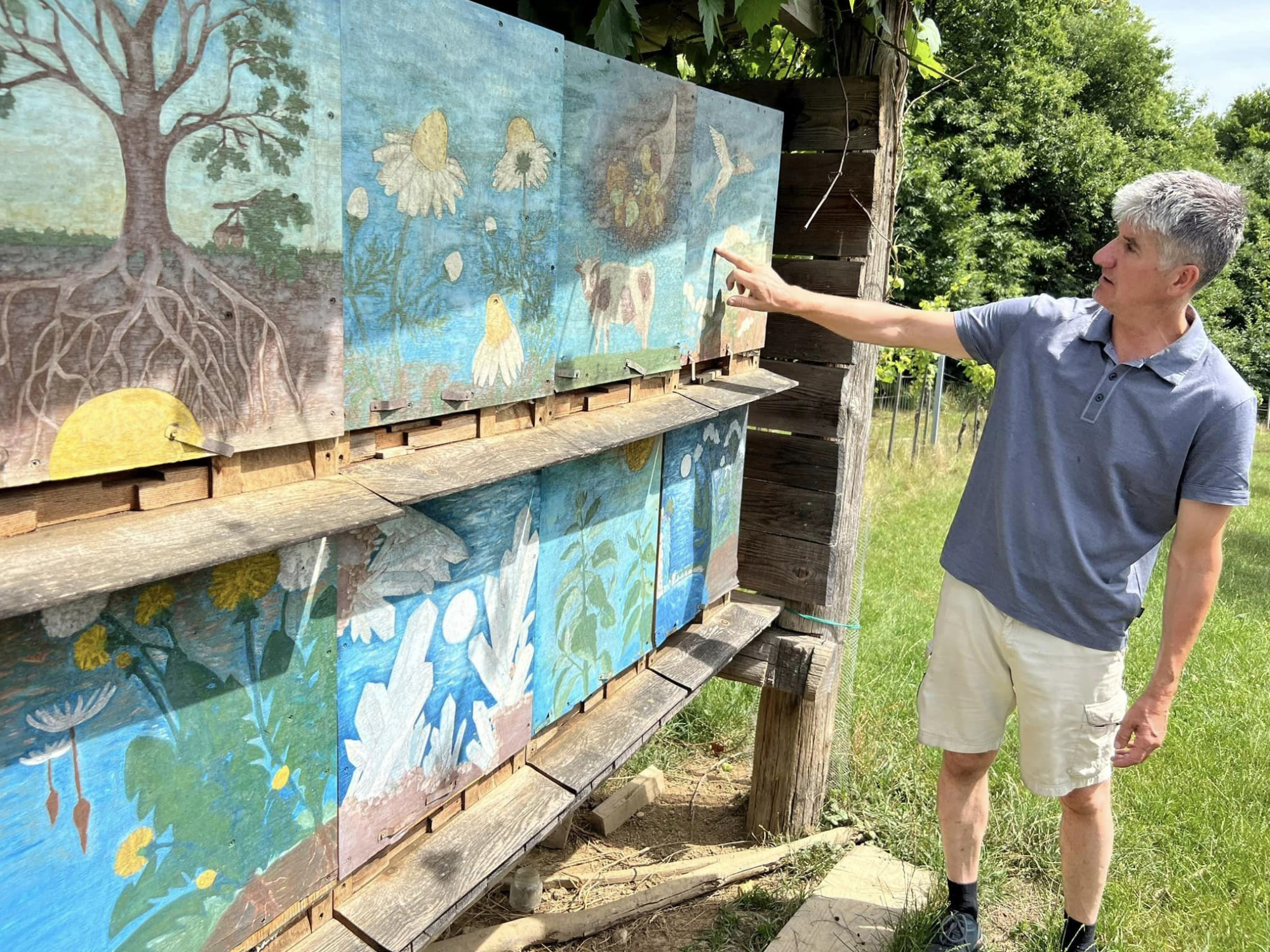 蜜蜂の重要性も語る。蜜蜂の存在により、受粉だけでなく、蜜蜂の持つ毒がぶどうを病害から守る「自然の抗生物質」となり、養蜂箱のロイヤルゼリーやプロポリスなどもぶどう畑に噴霧することでぶどうの耐性をさらに高くする。